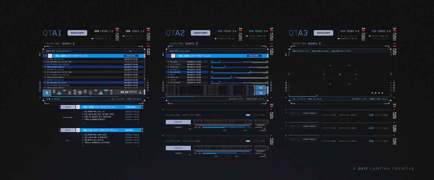 GUI design of the God's Eye 2.0 for the 2017 action/thriller The Fate of the Furious. Working with Cantina and Sean Cushing.